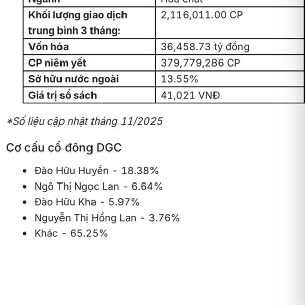 Tôi đã tổng hợp 1 file dữ liệu của “CTCP Tập đoàn Hóa chất Đức Giang (HOSE: DGC)” bao gồm 3 phần chính là dữ liệu cơ bản, dữ liệu cổ đông và dữ liệu giao dịc...