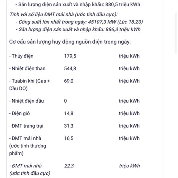 Điện than tiếp tục gia tăng, chiếm 61.5% tổng sản lượng điện sản xuất của ngày :)