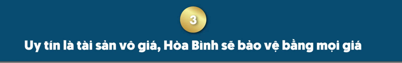 Với khách hàng và đối tác, trong lúc dòng tiền bị nghẽn, điều khách hàng và đối tác sợ nhất không phải là việc nợ tiền, mà là việc bị né tránh. Hòa Bình không chọn cách im lặng. Tôi và các cộng sự đã gặp gỡ từng nhà thầu phụ, nhà cung cấp để chia sẻ thực trạng và cùng tìm giải pháp.