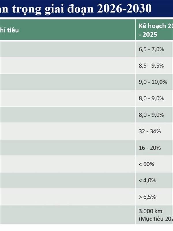 Chỉ tiêu kinh tế quan trọng 2026-2030