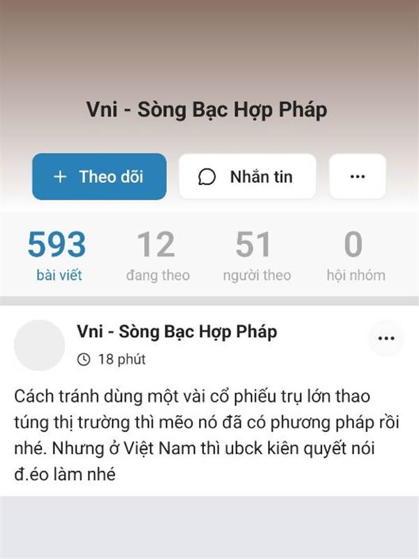 Vni - Sòng Bạc Hợp Pháp thế mày tua mục cộng đồng vcb bid fpt vnm trần tím ngày hôm đấy rồi quay video lại gửi đây xem có ai chửi ko hay mày bị mù ko thấ...Thêm