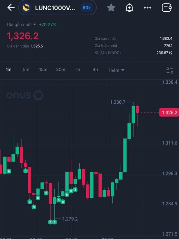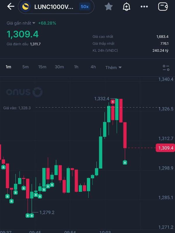 Trong lúc chờ đợi khởi động nhẹ Short con LUNC , tăng quá tăng gần 70 % .