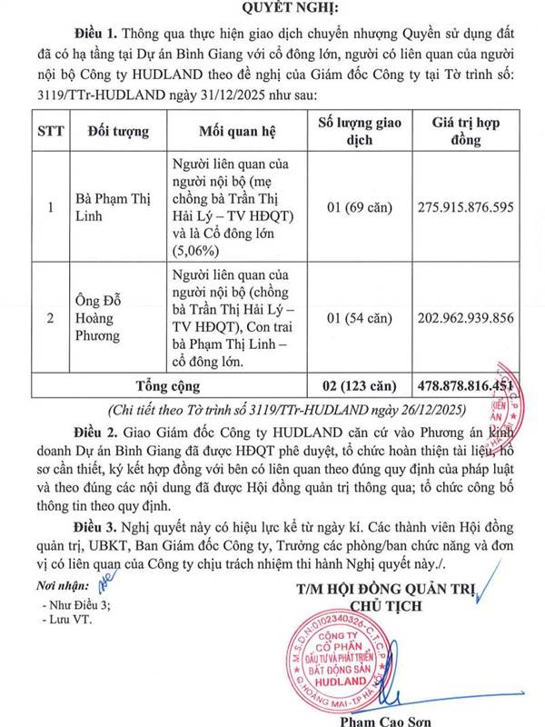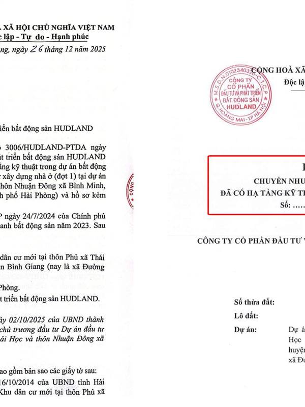 🔴 Cập nhật lại: Dự án Hudland Bình Giang đã chính thức nhận được "Giấy phép bán hàng" thông qua văn bản xác nhận ~600 lô đất đủ điều kiện chuyển nhượng từ Sở Xây dựng (26/12/2025). Với văn bản pháp l...Thêm