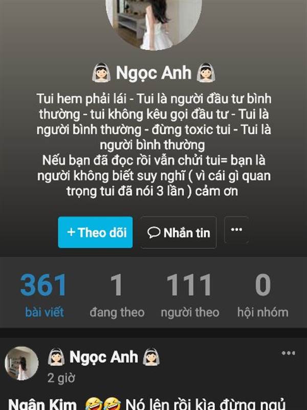👰🏻 Ngọc Anh 👰🏻 sao rồi. Quản trị rủi ro chưa. Hết chửi bừa chưa