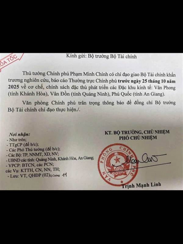 Hình như có chỉ đạo gì đó của Chính Phủ về đặc khu Phú Quốc - Vân Phong - Vân Đồn
