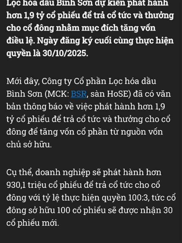 Biển Quý SonTun nói 30/10 kìa, nhưng mình hỏi 30/10 là ngày chốt quyền hay ngày chia thì bạn ấy k biết. Vì chốt quyền xong phải 1 thời gian sau nữa mới chia