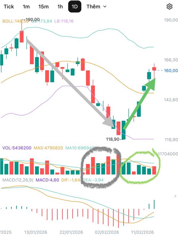 Vì sau đợt rụng từ 190 về 120 với volume cao, tức gần như đã bán cắt lỗ sạch