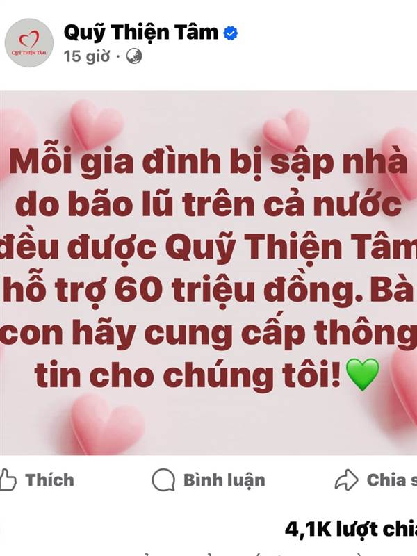 mỗi gia đình bị sập nhà do bão lũ, đều được quỹ của vin hỗ trợ 60tr đồng, trong khi một số thằng chứng sĩ bất mãn vẫn sủa hằng ngày trên diễn đàn này nào là khổ dân nào là giết dân 🤣, nực cười, nhưng...Thêm