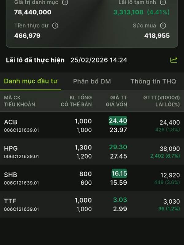 Tuankiet Duong ui, hai ngày nay tăng 5,6% rồi còn chê, tui ôm ACB nhíc từng chút một tui còn mừng rỡ hạnh phúc lắm đây
