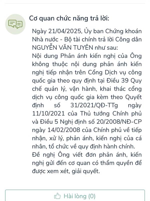 thao dinh bác gửi lên hnx xem sao. Cần có những ng như bác. Chứ ubck nó ra kết luận chắc ae cổ đông cũng ko chịu nổi mà bán cắt lỗ hết rồi