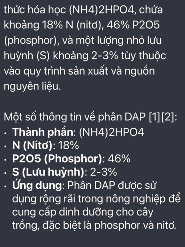 Lưu huỳnh để tạo acid sulfuric pư với quặng apatit tạo phosphoric pư với amoniac tạp ta phân đap. Để tạo ra dap tp cần cần nhiều yếu tố và công đoạn khác nhau...Thêm