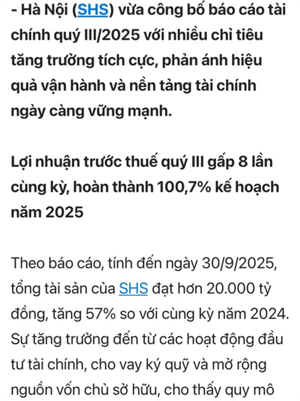 SHS đạt 1.379 tỷ đồng lợi nhuận sau 9 tháng, hoàn thành 100,7% kế hoạch năm 2025;