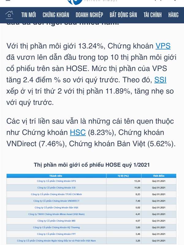 2017 đã từng có ông anh ở 1 CTCK lớn lúc đó là đang trong top 3 nói với tôi là VPS không bao giờ có thể vào top 10 được đâu