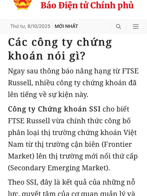 Ở trường hợp của VNI thì tháng 9 vừa rồi đã đánh giá lên hạng nhưng sẽ có 1 kỳ review (tháng 3/2026) để xem đáp ứng các tiêu chí nh...Thêm