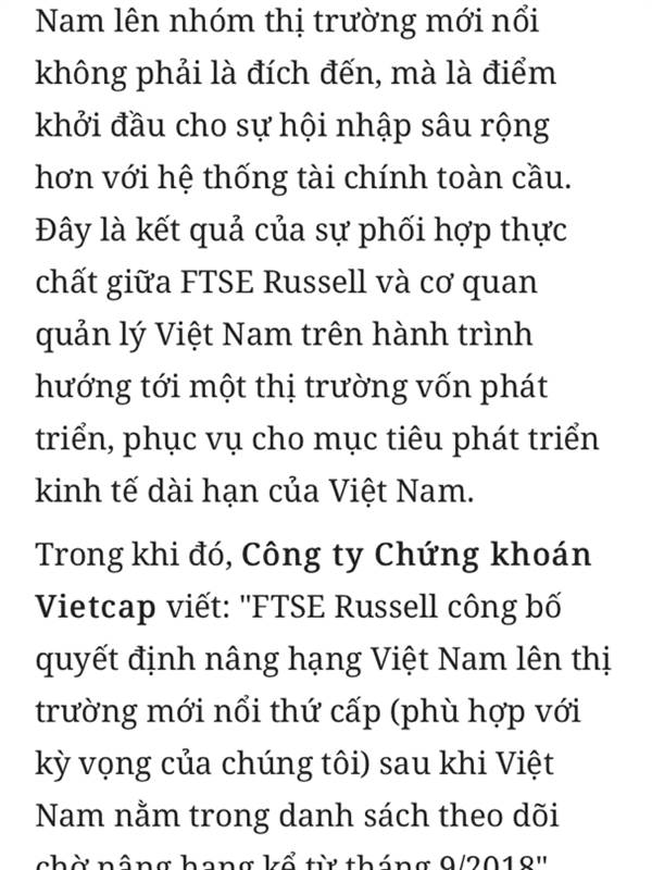 Việc lên hạng thì đã phản ánh vào giá mấy tháng nay rồi nên không có chuyện tin ra là tăng phi mã.