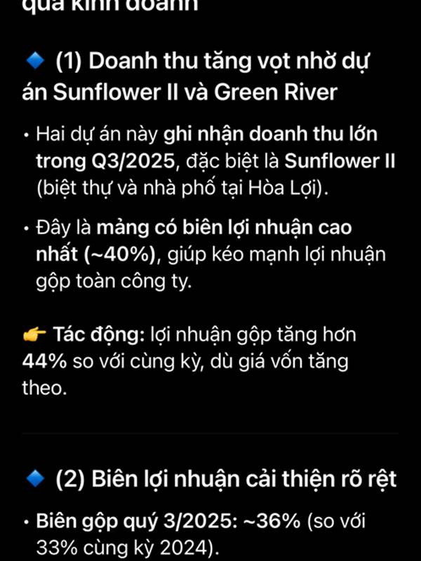Đầu Tư Tăng Trưởng vậy cái tài sản dở dang dài hạn 600 tỉ chuyển sang hàng tồn kho là dự án hoà lợi và gì đó quên tên, chuyển vậy là đã xây xong chuyển sang tồn kho để bán hàng, khả năng quý 4 bán. Còn khoản phải thu gì...Thêm