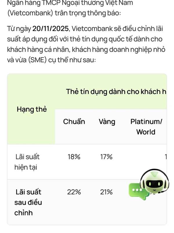 Lãi suất thẻ của VCB đã tăng, Sab tiền vô biên.
