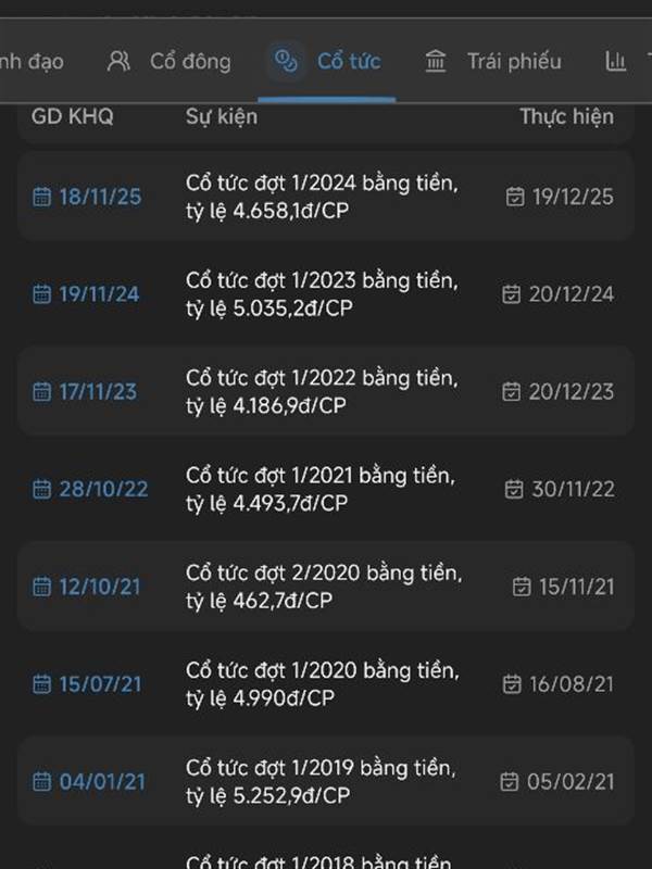 nếu muốn ăn cổ tức thì chọn con khác như VEA,MSH..chu kỳ ngành đường đã hết rồi,hiện tại còn thi công mấy dự án mở rộng nên lợi nhuận những năm sau sẽ thấp thôi vì khải khấu hao