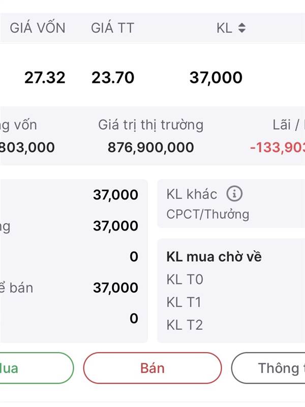 Tịnh Hoàng giá 27 lên 27.8 éo bán tuột mẹ tới giờ cay thôi rôi.