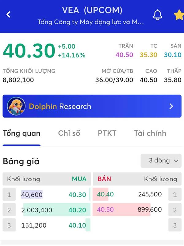 Vni 1500 Có nhé bạn. Hôm tím giá 40.2 nó kê 1 lệnh mua 2 triệu cổ, rồi hủy