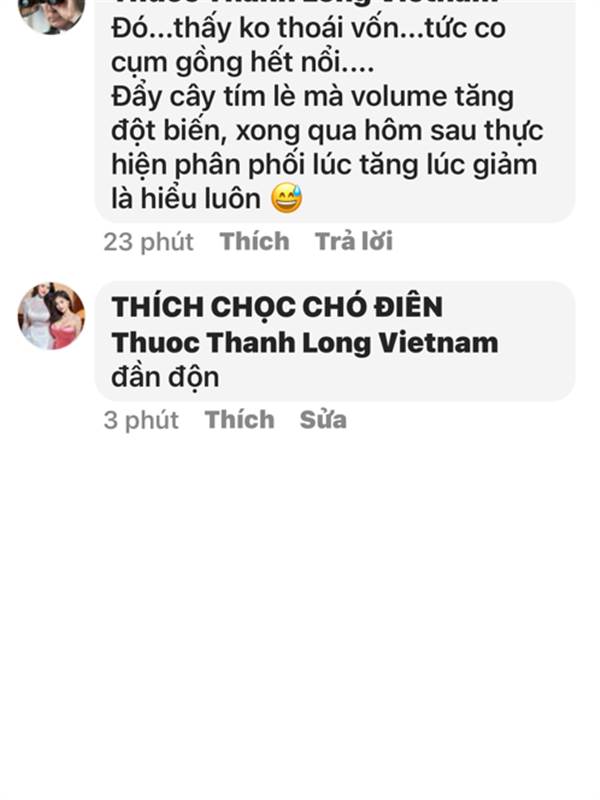 Tao nè....mày muốn gì...tao nói mai nó sập mày đớp cakkkk tao à.h.... Thấy con TTF và HQC bị đẩy tím 1 kèo Volume cực lớn, hôm sau vẫn thấy tăng xanh nhẹ rùi sau đó sập lòi mỡ ko...