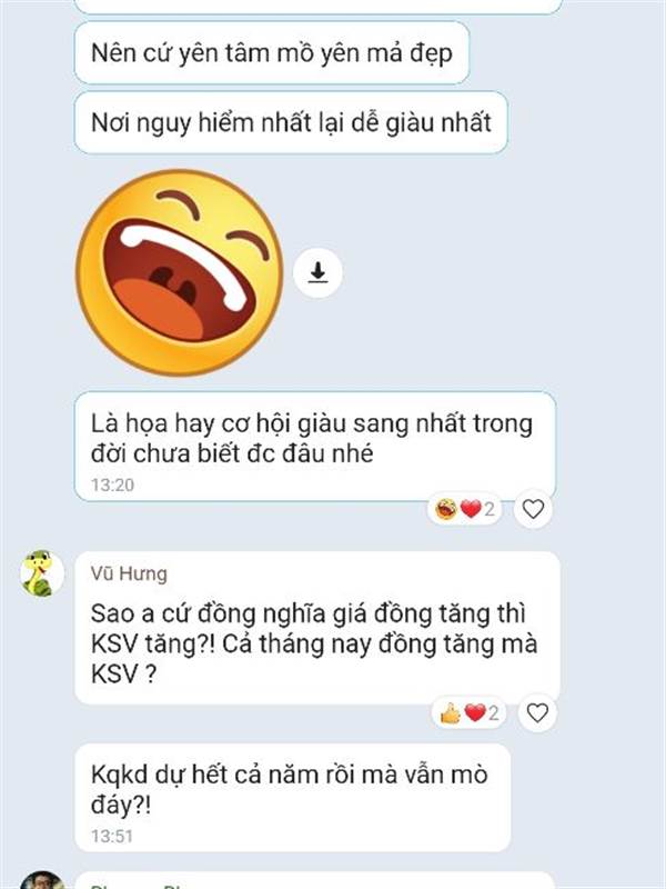Ae KSV yên tâm. A7 đặt niềm tin tuyệt đối vào KSV kể cả hủy niêm yết. Đã dọn sẵn mồ mả có rồng phượng cho ae ở trên mỏ đồng, mỏ vàng hết rồi.