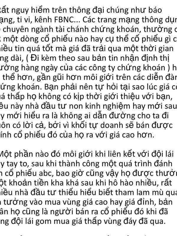 Say No Broker lúc cổ phiếu lên nó thường khuyên ko mua. mà nó phím cho nđt cầm tiền nóng hết ruột thế mua để nó chốt lời. rồi kêu cắt lỗ để phí thuế và tạo thanh khoản