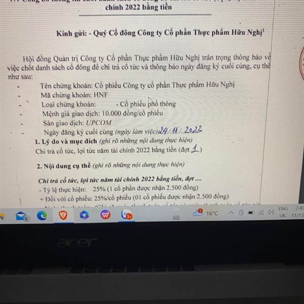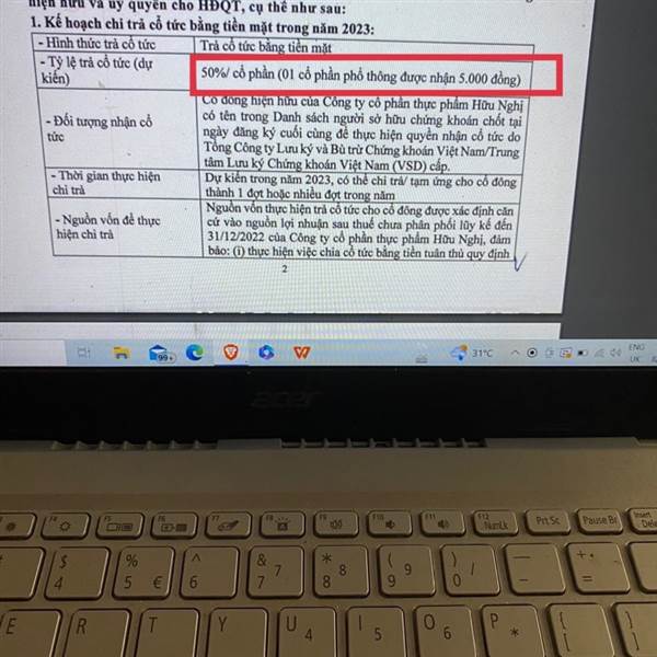 Đợt 1 (2500đ/cp) HNF theo nghị quyết Tổng cổ tức là 50% tiền