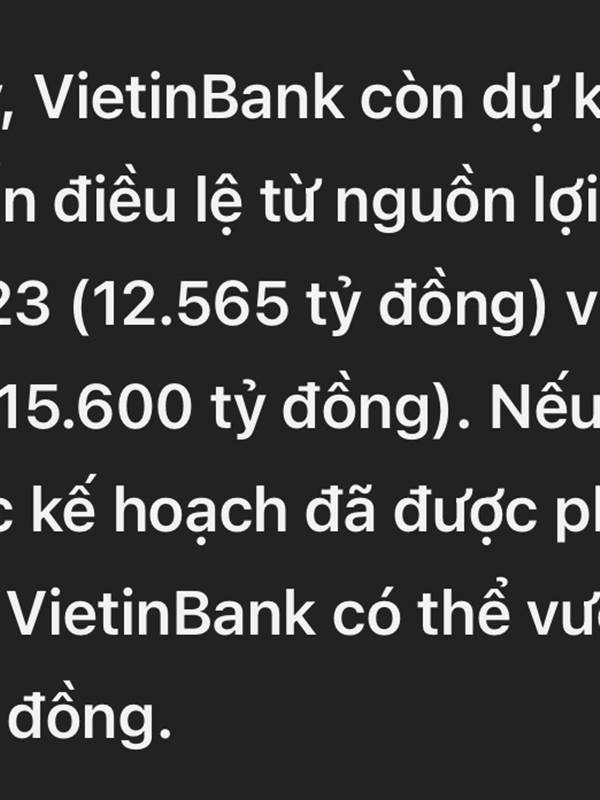 VietinBank còn dự kiến tiếp tục tăng vốn điều lệ từ nguồn lợi nhuận còn lại năm 2023 (12.565 tỷ đồng) và năm 2024 (gần 15.600 tỷ đồng)