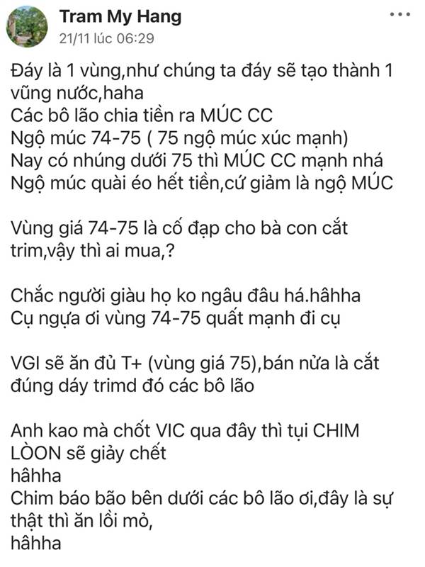 Cụ cứ nói làm ae bán tháo cụ bùi văn hợi sẽ mang tội lớn lắm nà