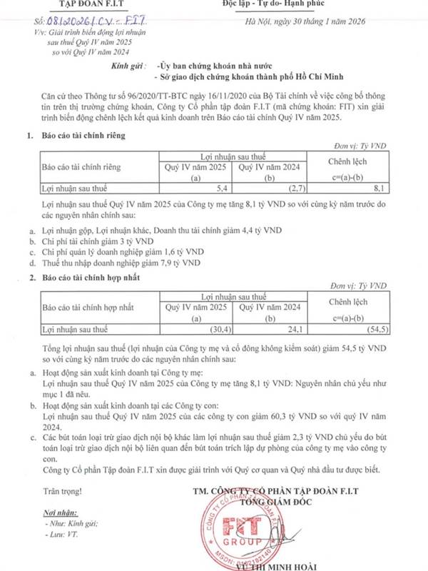 Tsc nó ra báo cáo lỗ từ hôm qua rồi, con này thì chỉ xem bctc riêng thôi