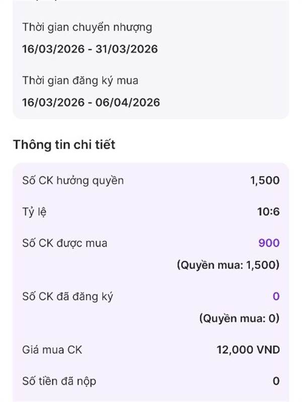 umh. Hạn 9/3 chốt danh sách. 16/3 -31/3 thực hiện quyền.
