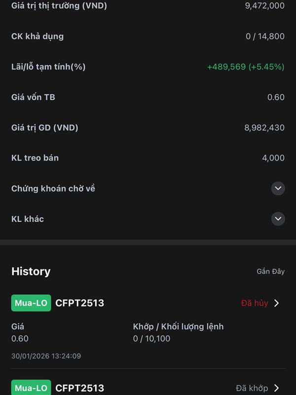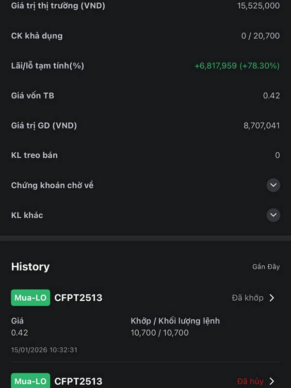 Đang kê giá gom 0.62 làm vòng mới con Chứng Quyền CFPT 2513