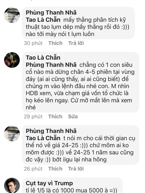 Sủa mà cũng *** thì mần mướn vs làm broker suốt đời 😆 hôm nay trồi đầu lên thì tao chốt lời giá 28.9 rồi súc vật bán nước tương ơi 😆