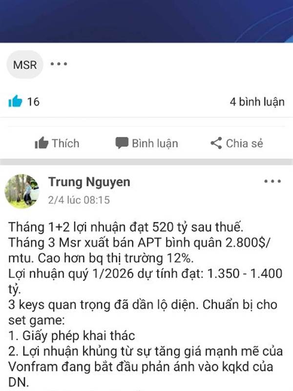 MSR trần tím 2k là lnst quý 1 hả bác? Tin giả à ? Hết 1+2 mới hơn 500 tỷ, tháng 3 gần 1500 á?