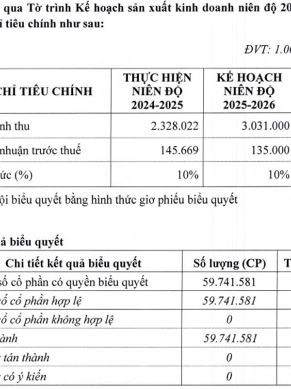 Kế hoạch năm 2026 không biết xây dựng trên cơ sở gì. Hay chỉ là ""sướng mồm"" đưa ra. Trích Nghị quyết Đại hội đồng cổ đông 2025 - 2026