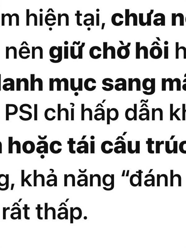 Hoa Truong PVCombank đc thoái vốn thì sẽ là bank tư nhân, con của nó là PSI cũng ko liên quan gì tới mấy ông dầu khí nữa. Lúc đó mới dễ tăng vốn, mới dễ có lái.