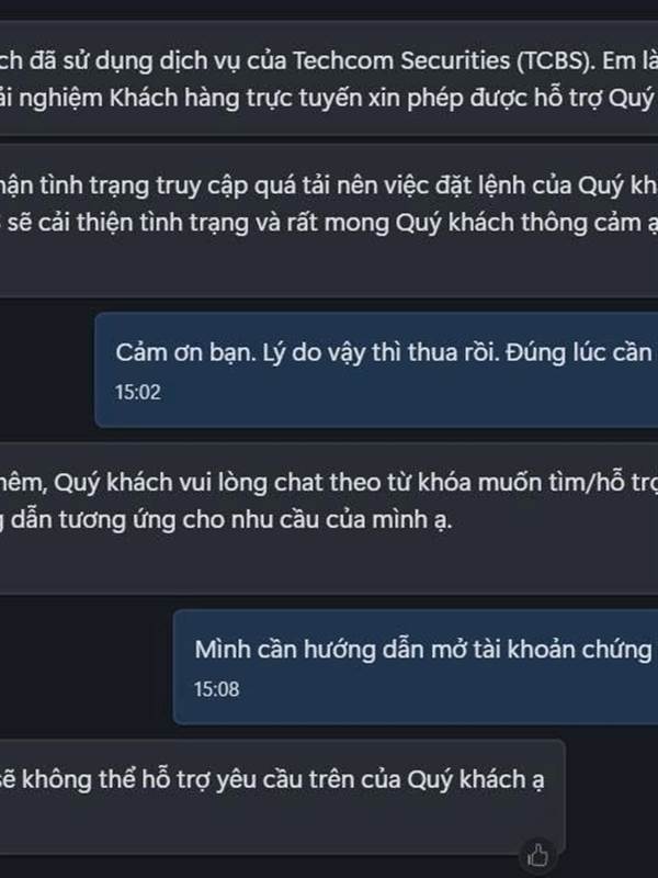Trần Quốc Vinh bấm đặt lệnh mua rồi mà nó không ghi nhận. Xác nhận bằng điện thoại rồi vẫn không thấy lệnh đâu. Bực thật.