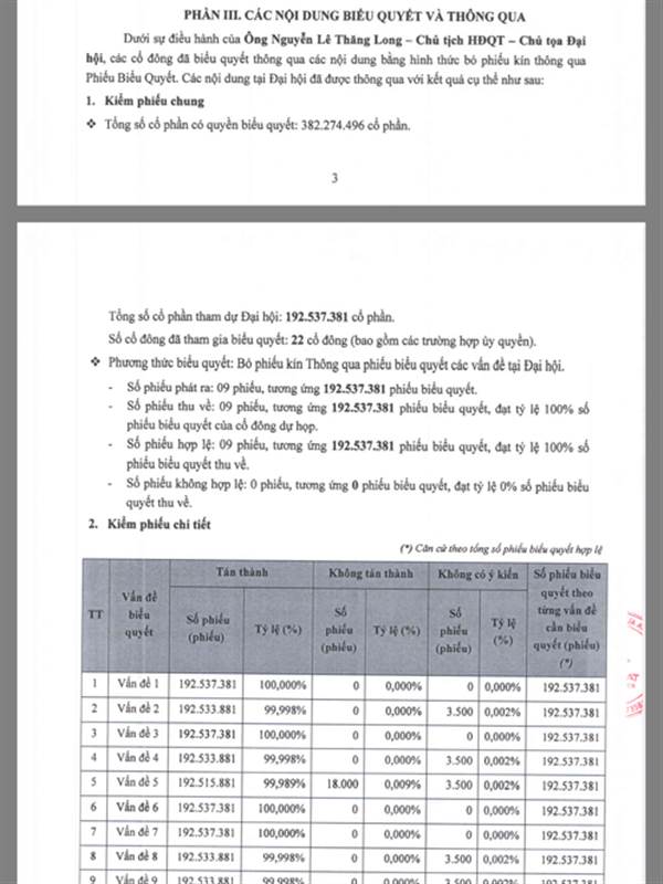 Họp trực tiếp. Nhưng nó mời những cổ đông lớn thôi. Đủ 51% là được. Năm ngoái mời có 9-10 ông gì đó là đủ rồi. Mời nhỏ lẻ đi làm gì cho rắc rối.