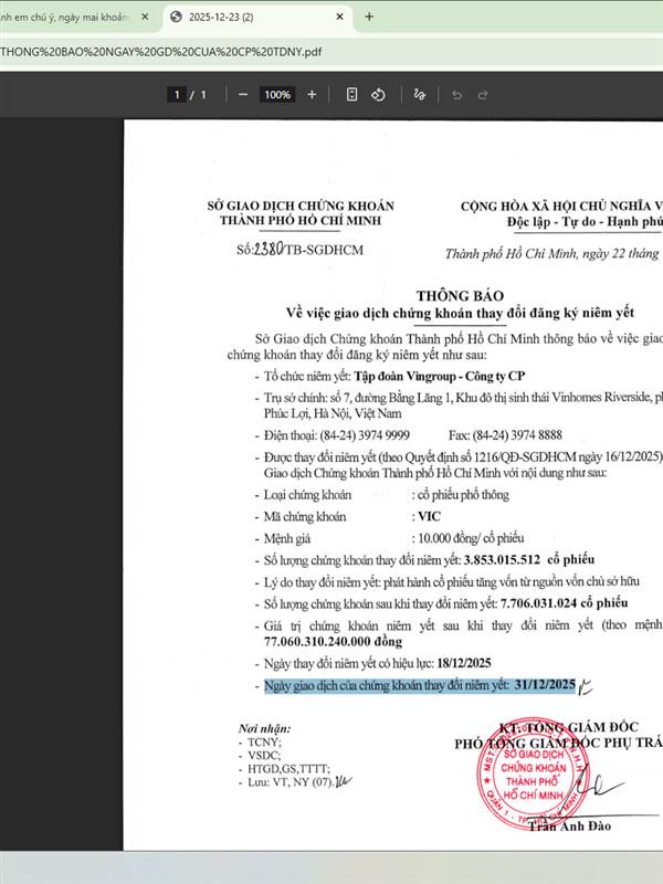Phản hồi bài viết Anh em chú ý, ngày mai khoảng 3.9 tỷ cp VIC sau k...