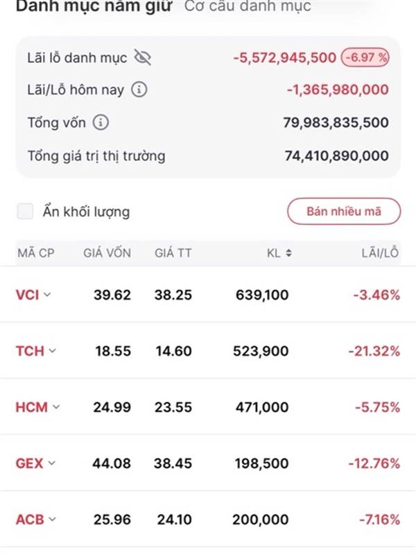 Em hôm nay còn vài chục triệu mua nốt HDC giá ATC. Hết tiền rồi, hôm nọ HDC lãi ko bán, nay âm luôn