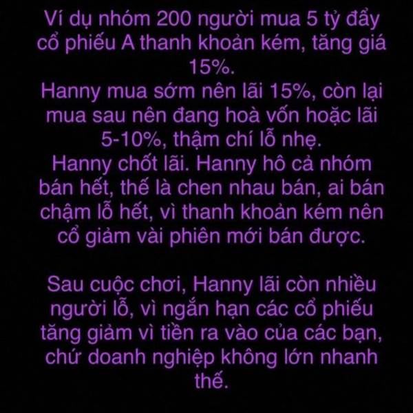Đây là cách thức th.ằng mặt l.ồn Hanny lùa gà và đã bị cao thủ chứng khoán Vịnh Simdep lật tẩy. Đ.ịt mẹ mày Hanny, mày thất đức lắm. Đ.ịt c.ụ mày, cả nhà mày bị xe Ben tông chết.