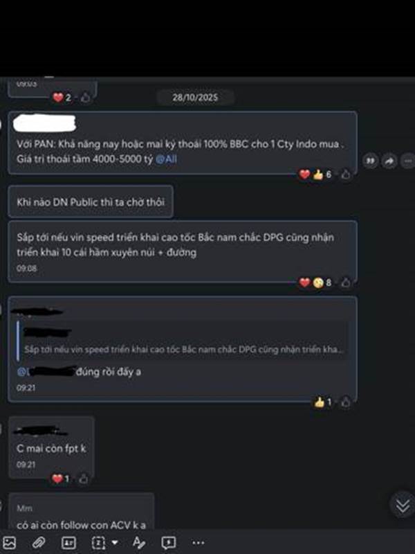 hungminh305 Đúng rồi. Tin giá thoái vốn thì chưa biết đúng hay không, nhưng thời điểm ông anh đăng group sáng 28/10 thì hôm đó PAN ký Thỏa thuận khung bán BCC là chính xác, sau kí PAN cũng không công bố thông tin...Thêm