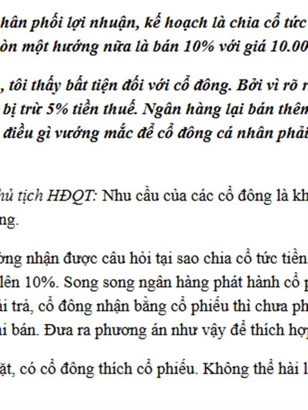 Mình ko hiểu dụng ý chia cổ tức tiền 10% rồi lại c...