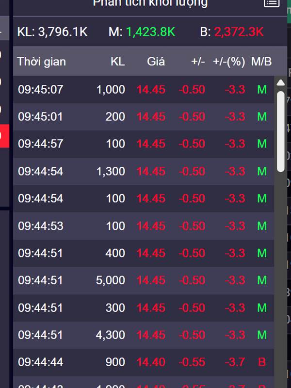 Nguyen Le bán chủ động có 1 triệu à trong 3 triệu cổ giao dịch, ông thần coi cái gì ra chủ động 2 triệu z ?