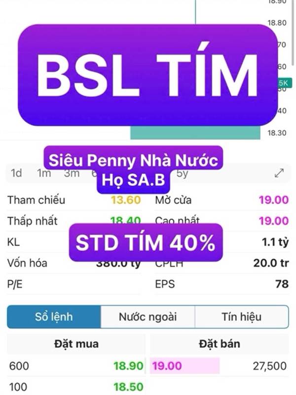 Std tím 40% rồi, Bsl sắp tím. Dòng Sab sắp chạy