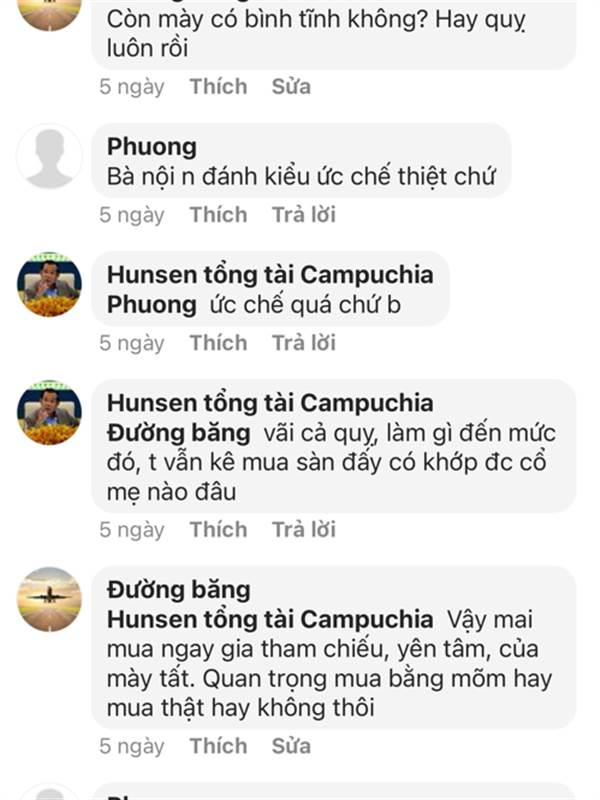 Hunsen tổng tài Campuchia Nhục như chó, phải sử dụng nick ảo khác để sủa. Hèn chi tao nghi nghi thứ ngồi đáii là đúng rồi. Chả biết 200 người FL họ có suy nghĩ thế nào lại đi FL thằng ngồi đáii này
