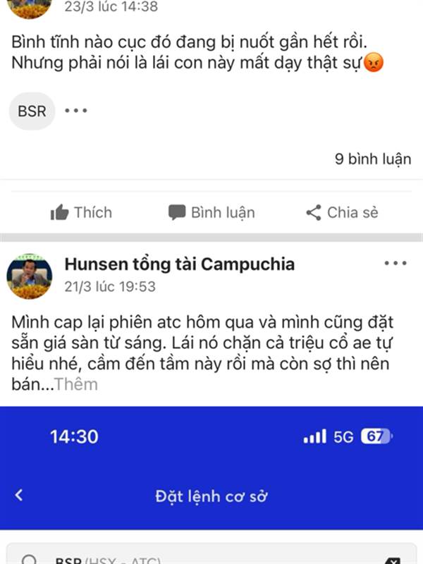 Còn chó này nó có 1 cái nick ảo này, bữa BSR tạo đỉnh, hô hào, tôi vào cmt cảnh báo, con chó này tiếp tục hô hào và nếu ai mua BSR lúc đó đến giờ chả biết bay bao nhiêu %. Mà thứ ...Thêm