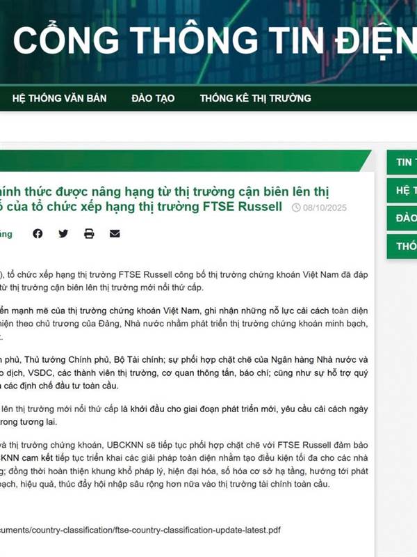 Chỉ còn bổ sunh thêm 1 tiêu chí nhỏ sẽ đánh giá lại 3/2026. Quan trọng nhất là dc ftse confirm rồi