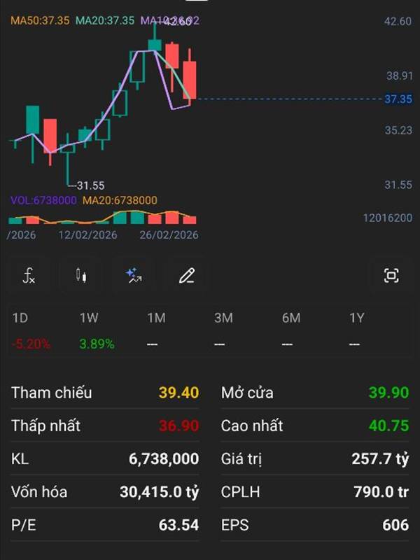 Con này giảm về 36.9 chạm MA10 mới bật dc